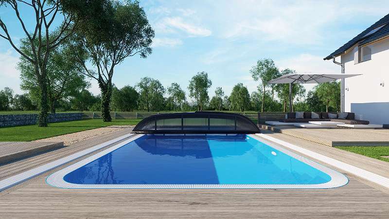 Luxus-Schwimmbadabdeckung in glasklarer Optik.