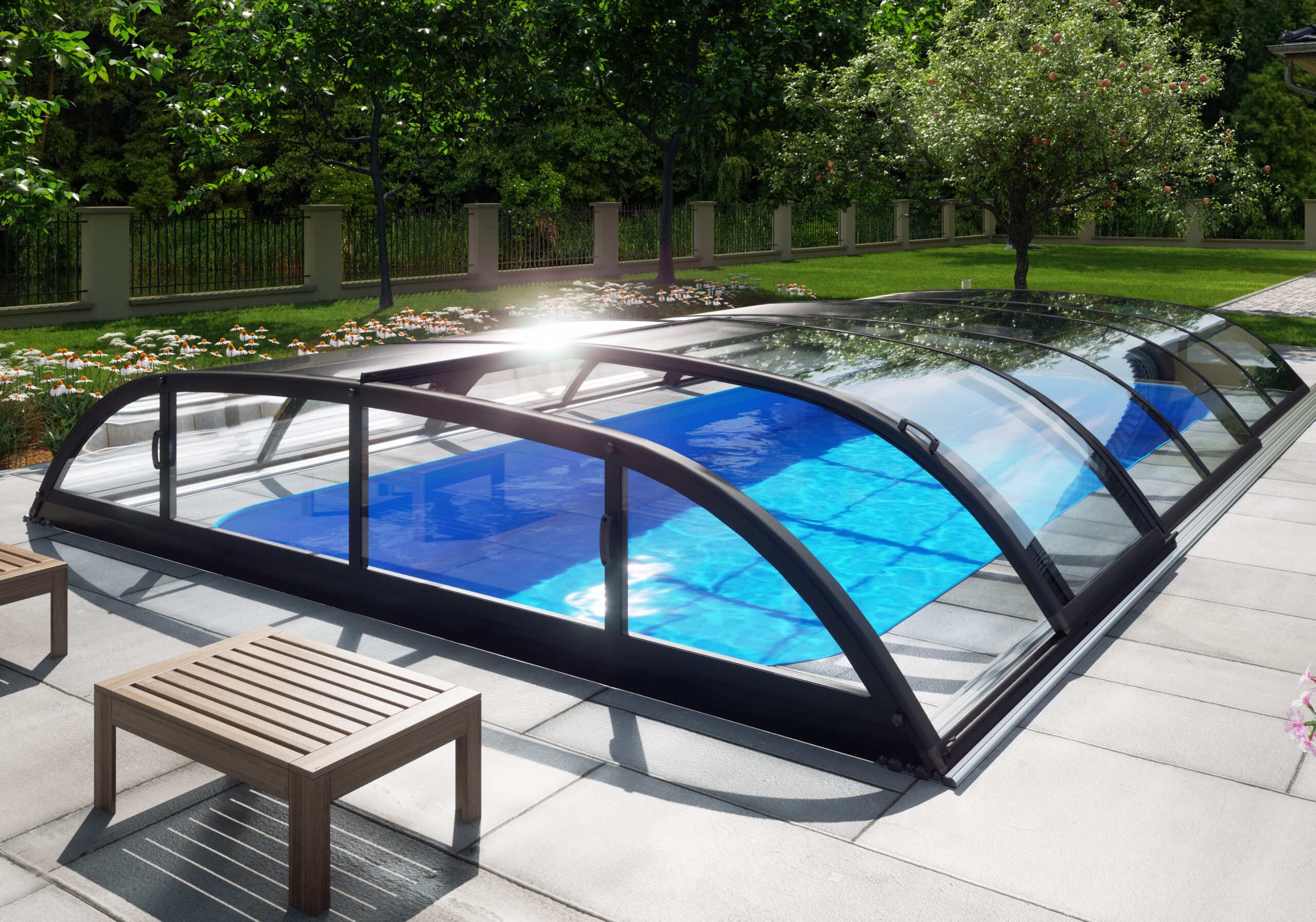 Edel Poolüberdachung Vollglas